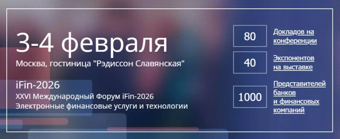 3-4 февраля 2026 года в Москве пройдет XXVI Международный форум iFin-2026 «Электронные финансовые услуги и технологии», организованный компанией «АйФин Медиа» при поддержке Ассоциации российских банков (АРБ).